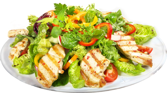 gemischter Salat, frischer Rucola und gegrillte Hähnchenbrust